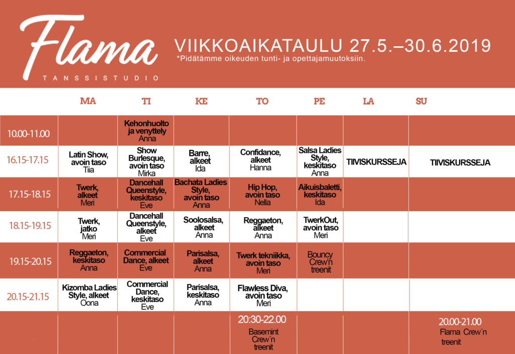We will be dancing at Flama the whole summer! July´s and August´s schedule will be published later.