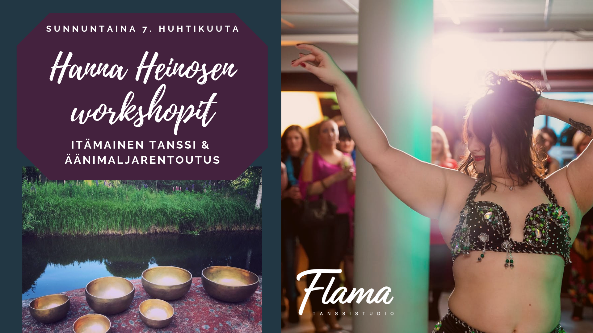 On Sunday, the 7th of April we will have two workshops instructed by Hanna Heinonen! SCHEDULE 11:00-12:30 Oriental dance (beginners) 12:45-13:30 Singing bowl relaxation PRICES